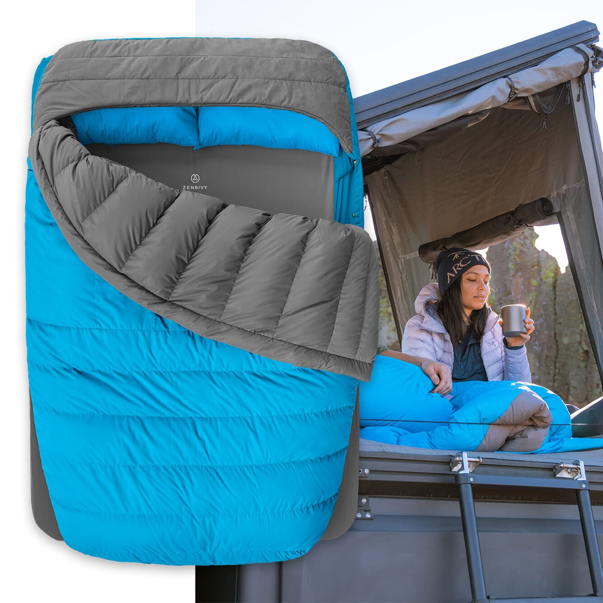 The oversized double quilt functions and feels just like your home comforter, allowing you and your partner to share the outdoors without sacrificing the comforts of home.