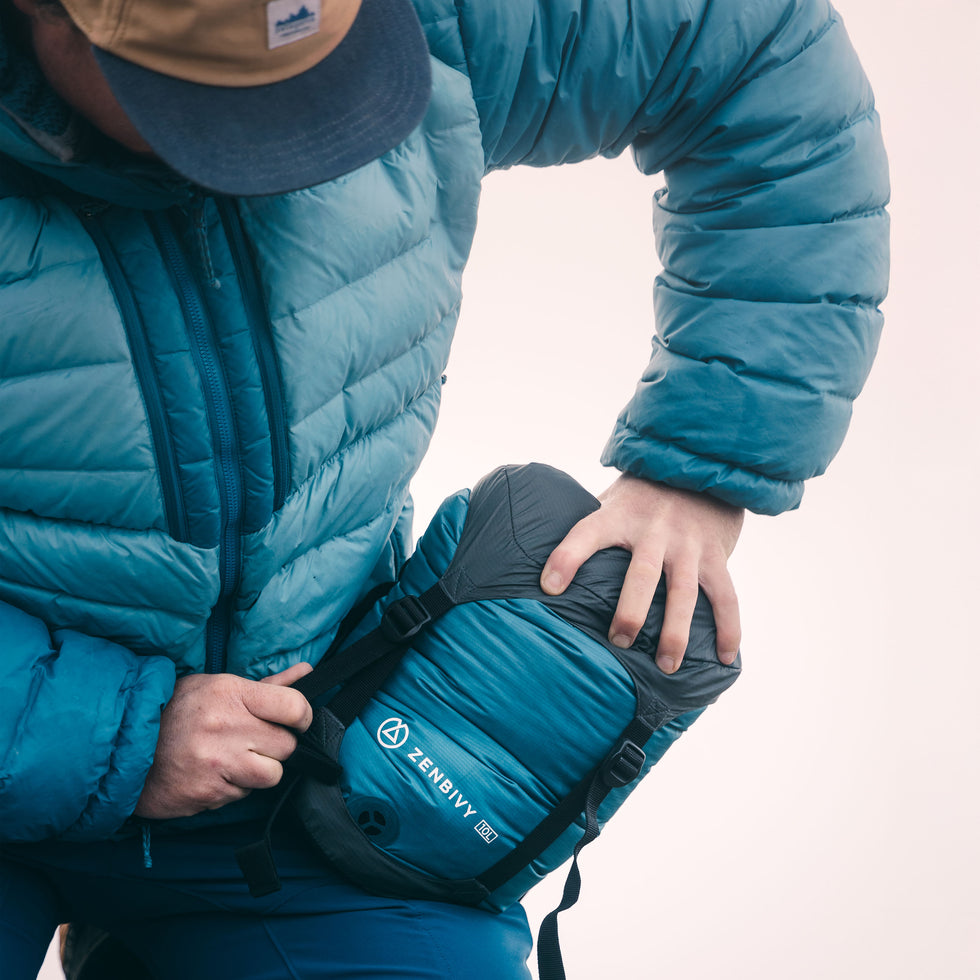 Build your perfect pillow with a washable case, inflatable bladder, and down topper. Clip it to your Zenbivy Sheet to stay put all night. Home comfort, trail weight.