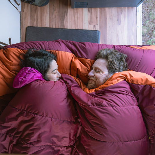 Three new sheet sizes to fit nearly any car-camping mattresses, regardless of how thick! The new Overland Double is also our first fully additive-free bed with DWR-free fabrics and 650FP down. The 2026 Overland Double Quilt comes in both down and synthetic, making it our first all-synthetic Double Bed option.