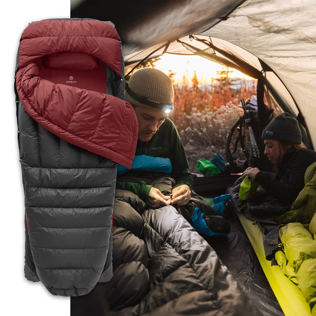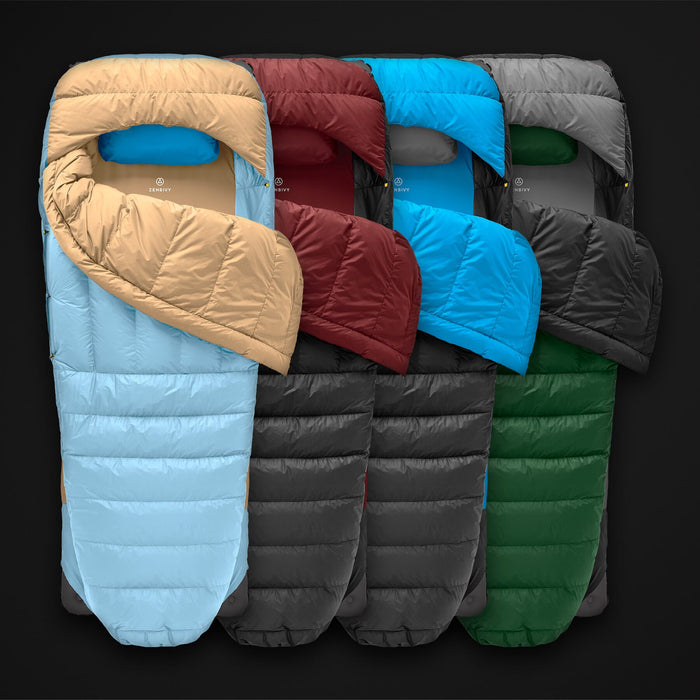 Unlike sewn footboxes that restrict your movement and do not vent, Zenbivy’s patent-pending Fast Footbox™ uses a single clip that allows it to expand for more space or narrow for more warmth.