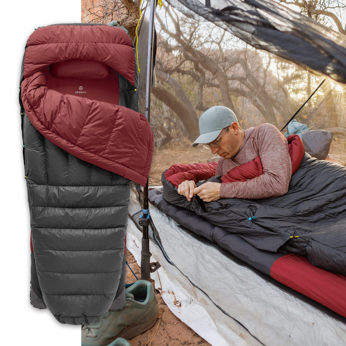 Discover how our patented 2-piece design blocks drafts without restricting movement—so sleeping outdoors feels just like your bed at home.