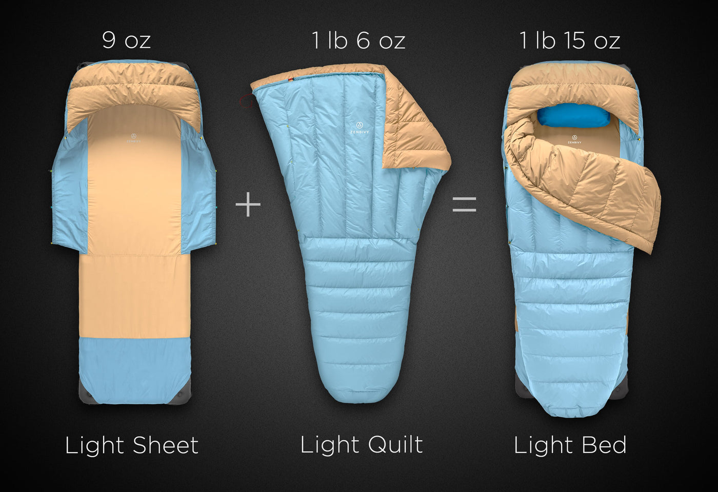 Light Sheets are comfort-mapped with 25D Pongee to add comfort where you need it and 15D Nylon to save weight where you don't.