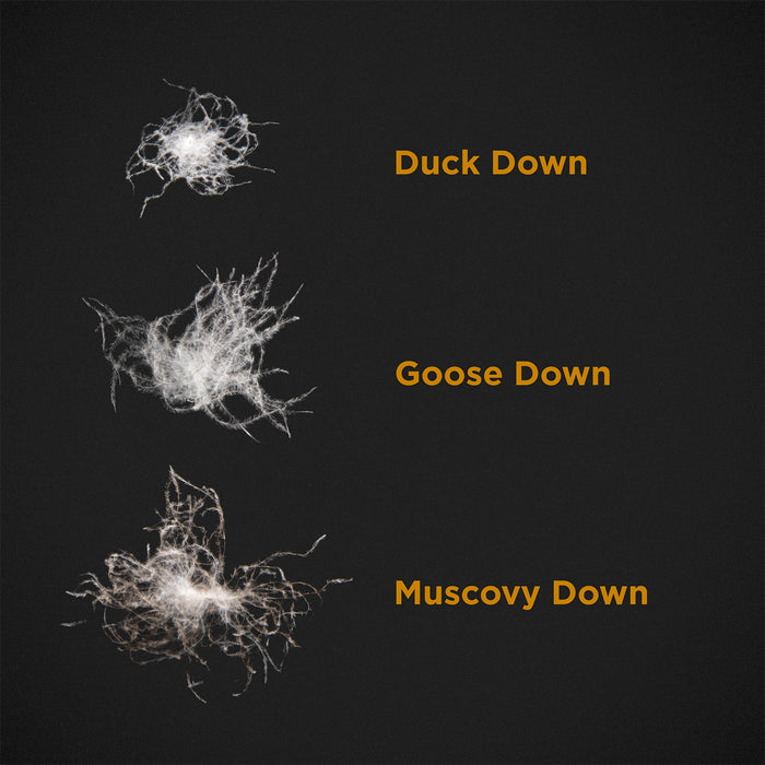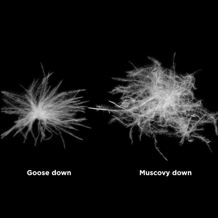 Muscovy down's exceptionally large plumes give it the ability to effortlessly achieve true 900+ fill power. That's comparable to even the highest quality goose down!