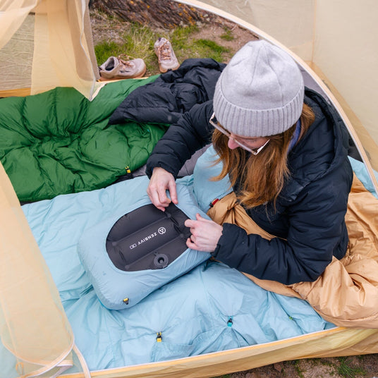 The pillowcase, bladder, and down topper compress easily—stuff them in the same dry sack as your Zenbivy bed!
