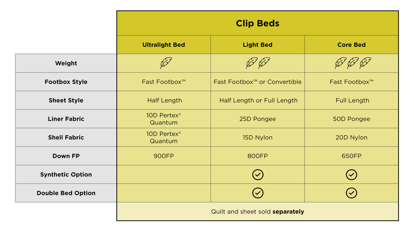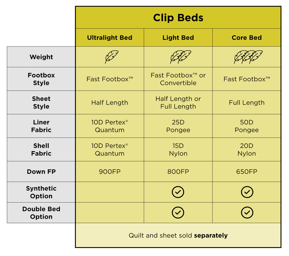 Built for ultralight backpackers, the premium Ultralight Bed is our lightest and most packable bed.