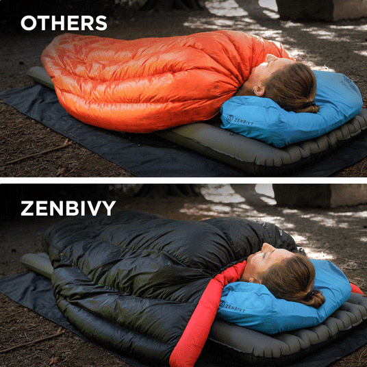 The Problem: If you've slept in a traditional backpacking quilt, you'll know they can be draughty. Some quilts add various cinches and straps to try to address draughts, but often these “features” make the problem worse. When you cinch the top drawcord on those quilts, your quilt narrows and pulls upwards at the edges, creating more draughts along the sides.