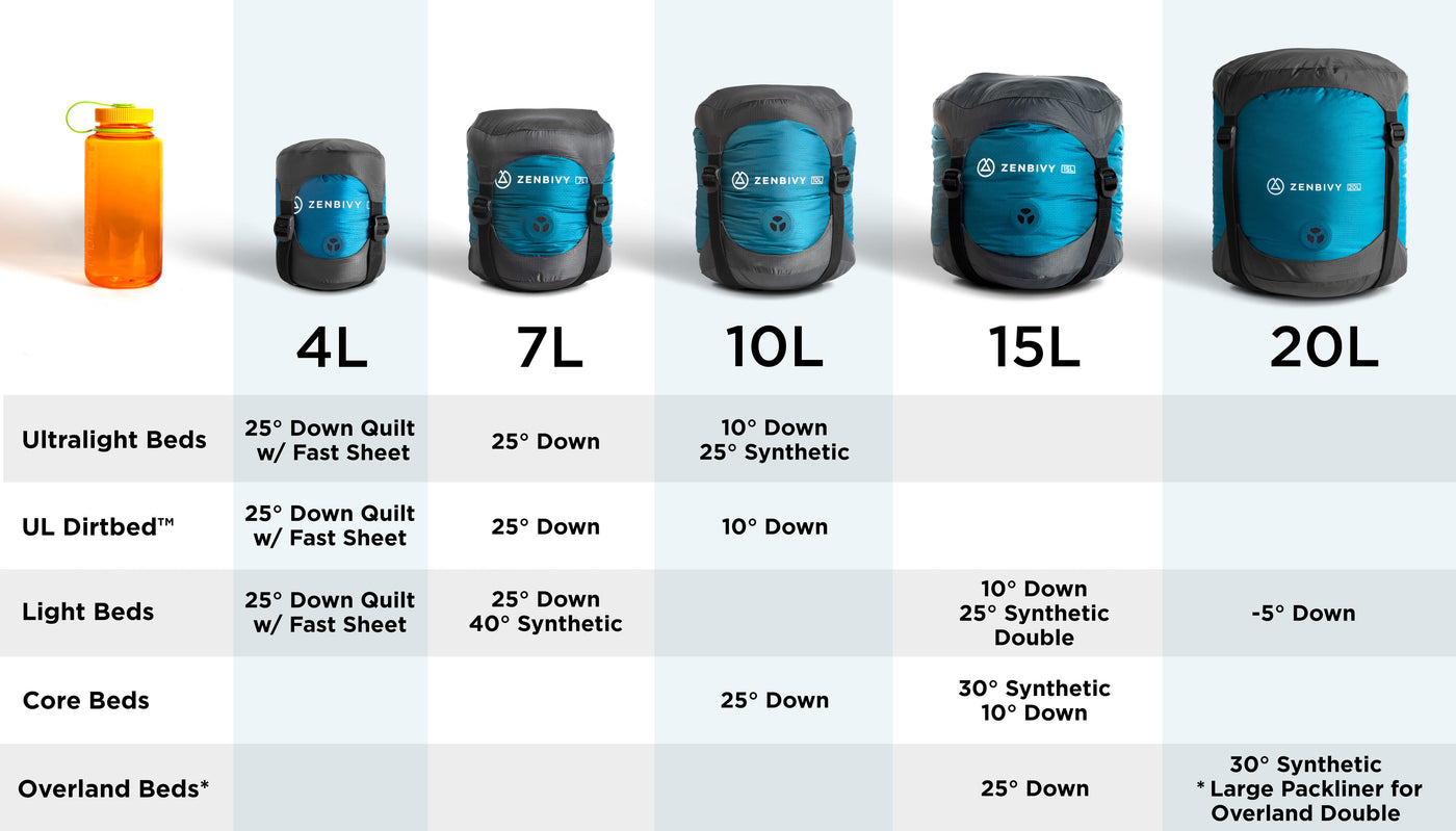 Lightweight, fully welded, water-tight storage for your sleeping bag with separate compression caps that never stress seams.