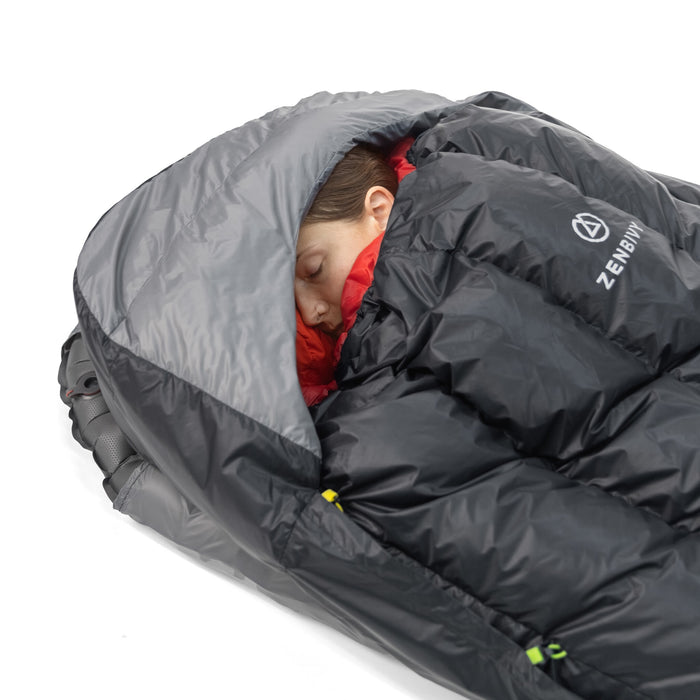 Unlike a traditional backpacking quilt + straps combo, Zenbivy sheets feature an integrated hood to insulate your head. Sheets are available in insulated styles for full mummy bag warmth or uninsulated styles for use in warmer weather or to line with a down jacket.