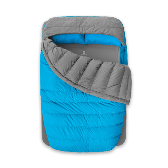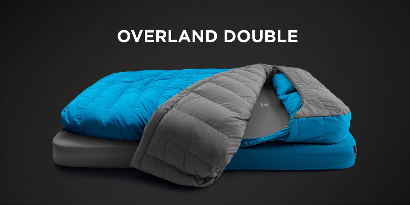 Overland Double Quilt - -4ºC Down / Blue/Grey is backordered and will ship as soon as it is back in stock.